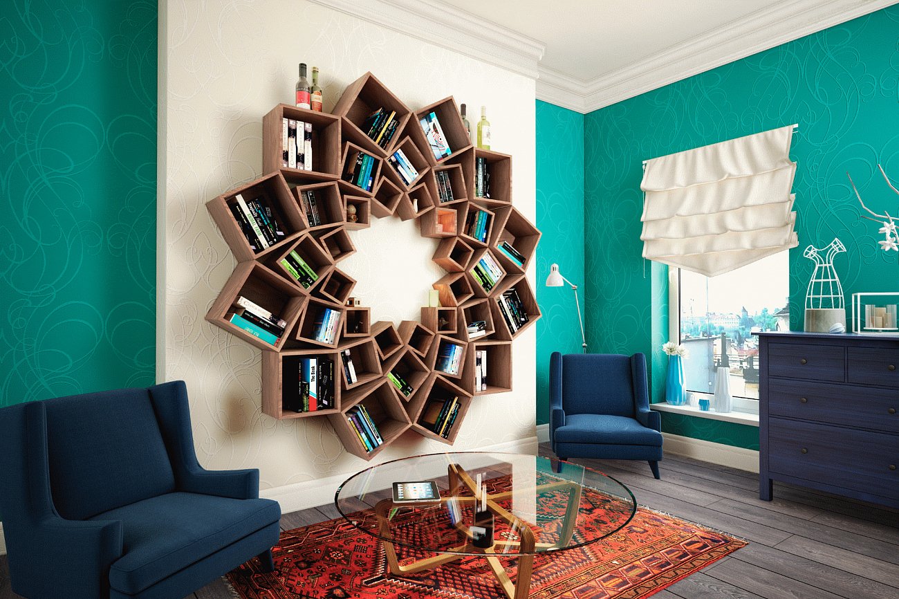 Потрясающий стеллаж из трех кругов квадратов!