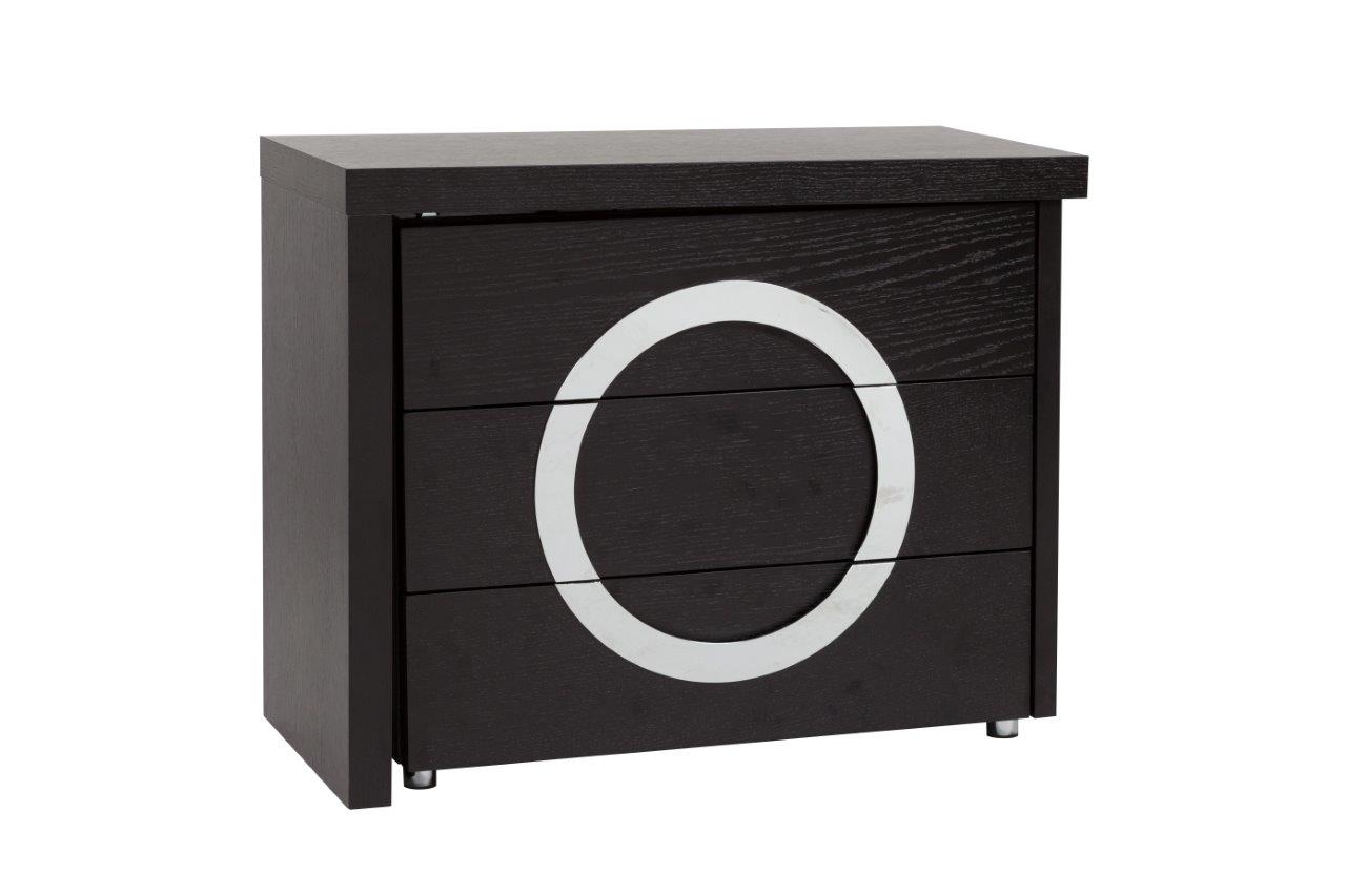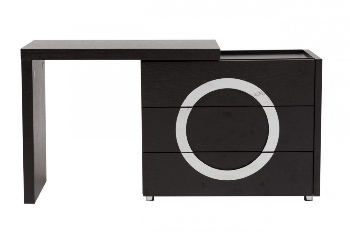 Туалетный столик Towens отлично подходит для современной леди, которая любит выглядеть красиво и ценит удобство в интерьере. Отличающийся оригинальным и выразительным дизайном раздвижной туалетный столик в благородном чёрном цвете гармонично впишется в интерьер в стиле модерн. Спереди он имеет три функциональных отделения, посередине расположен декор в форме круга серебристого цвета. Благодаря удобной столешнице и трем выдвижным ящикам все необходимые вещи и мелочи можно будет хранить в одном месте.