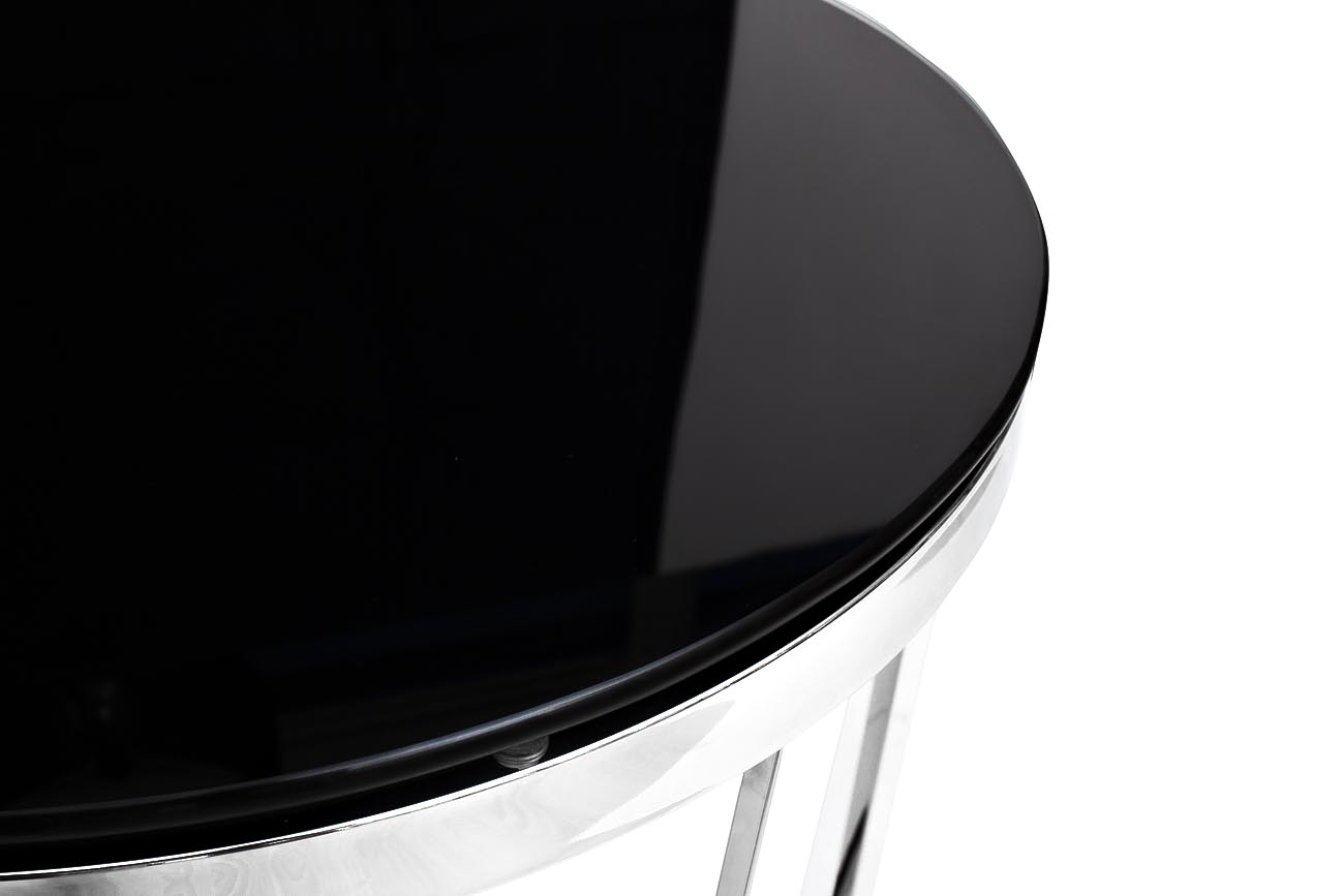 Столешница - стекло черного цвета, основание - хромированная нержавеющая сталь